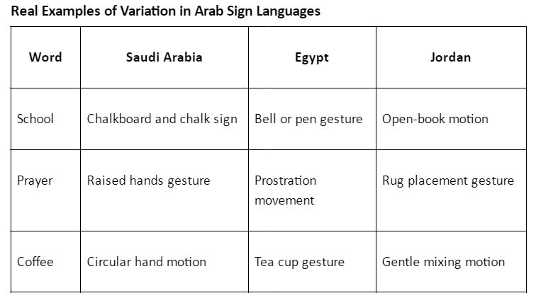 Just like spoken Arabic comes in various dialects, sign language carries regional variations that reflect local culture, history, and community practices.